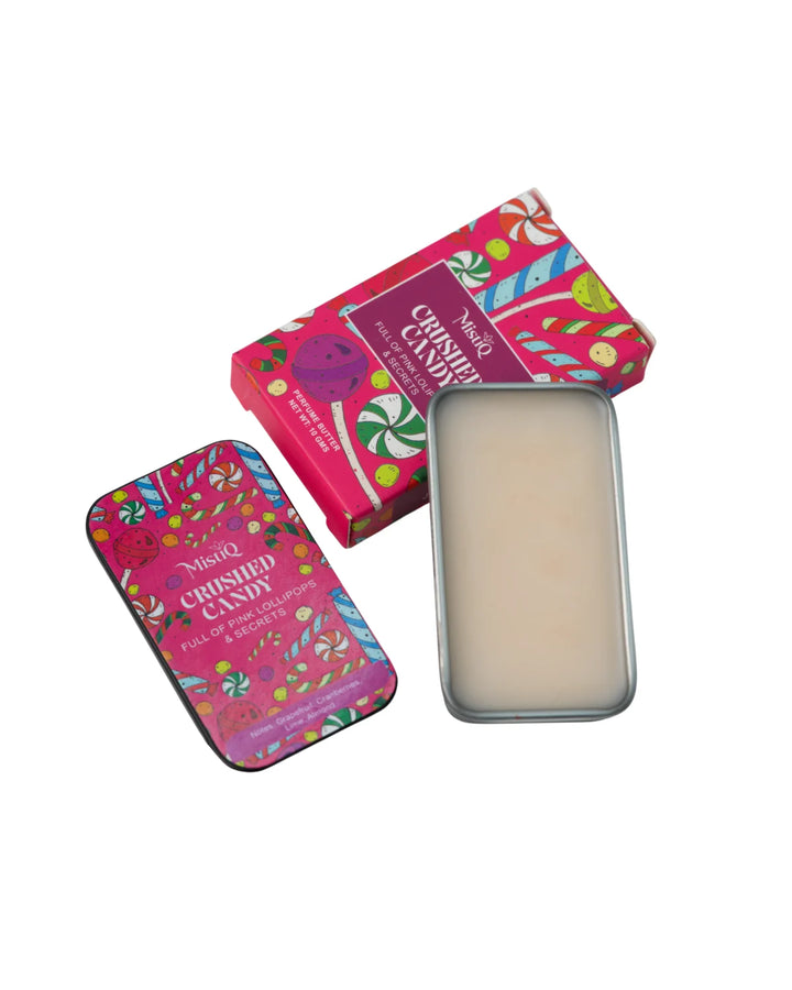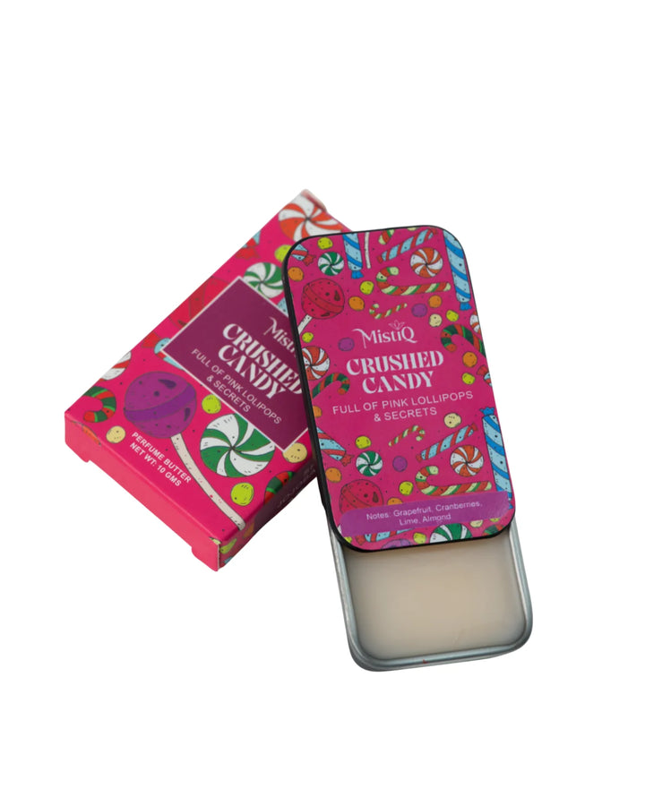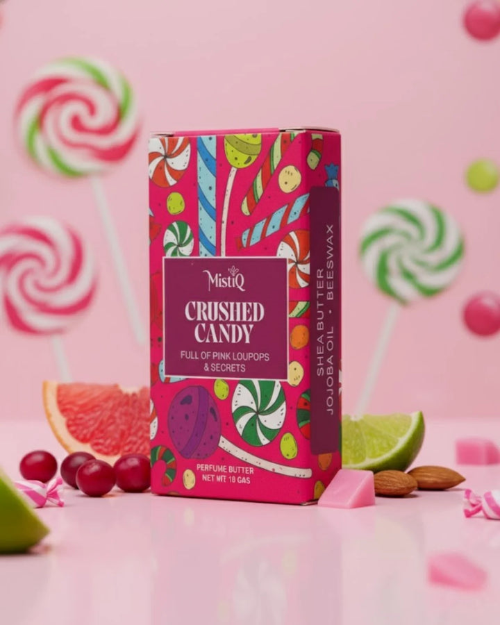 Indulge in the playful charm of Crushed Candy, a solid perfume bursting with pink lollipops, sweet whispers, and little secrets. Let's feel some sweet mischief in a swipe.