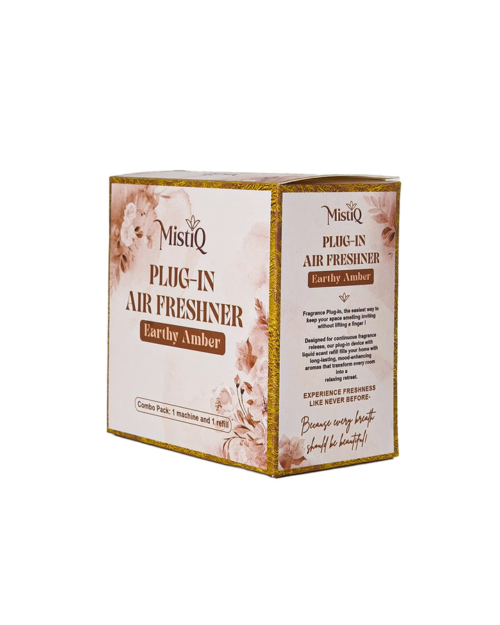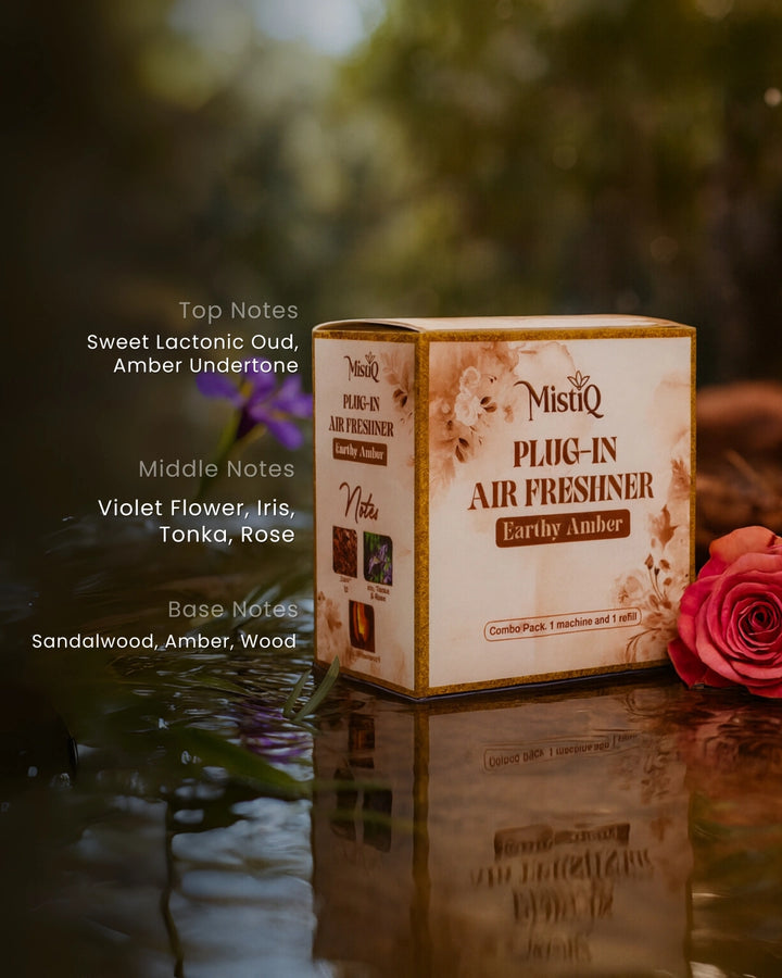 Wrap your senses in the golden glow of Earthy Amber. This premium plug-in air freshener blends the richness of sun-warmed amber with grounding earthy woods, creating an atmosphere that feels both opulent and deeply comforting.