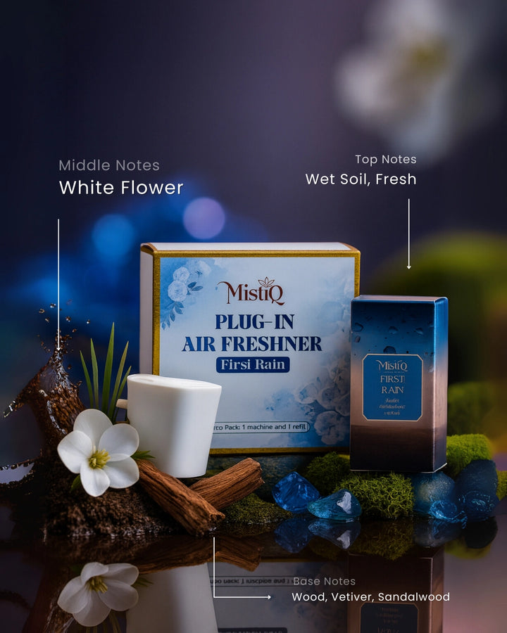 Let First Rain transport you to that magical moment when the earth exhales after the first drops touch its surface. This premium plug-in air freshener blends the crisp clarity of rain-washed air with the grounding warmth of sunlit soil, creating a fragrance that feels both refreshing and soul-deep.
