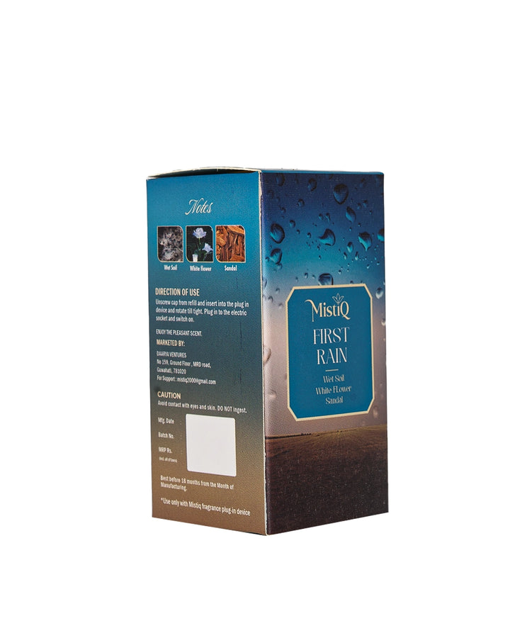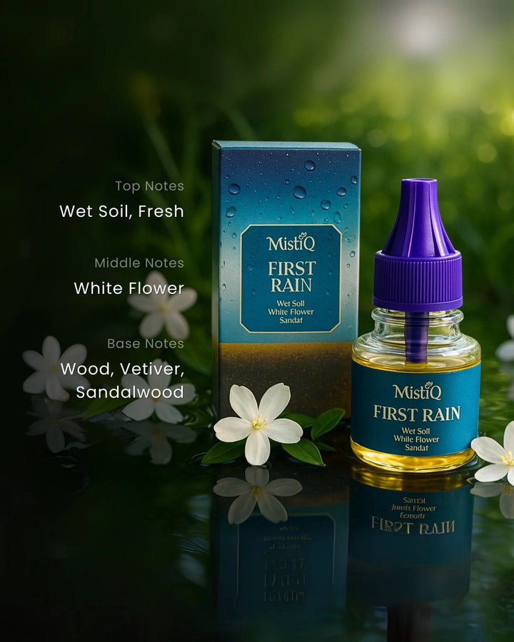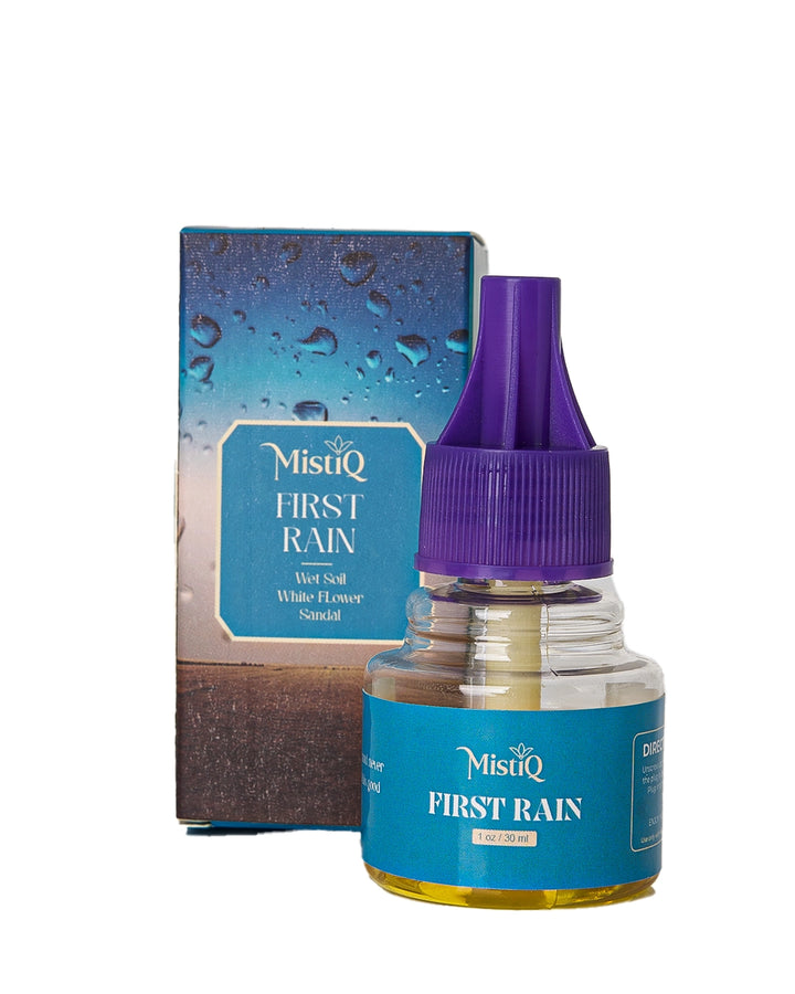Relive the magic of the very first drizzle. The earthy mitti ki khushboo mingles with a gentle breeze, awakening the soul with pure mann vaasanai. Fresh, grounding, and deeply nostalgic—this fragrance fills your space with the joy of monsoon’s first touch. A crisp, earthy fragrance that brings the soothing essence of rain-soaked soil and cool breezes into ypur space. Crafted exclusively for the MistiQ plug-in device, this refill spreads calmness and renewal with every breath.