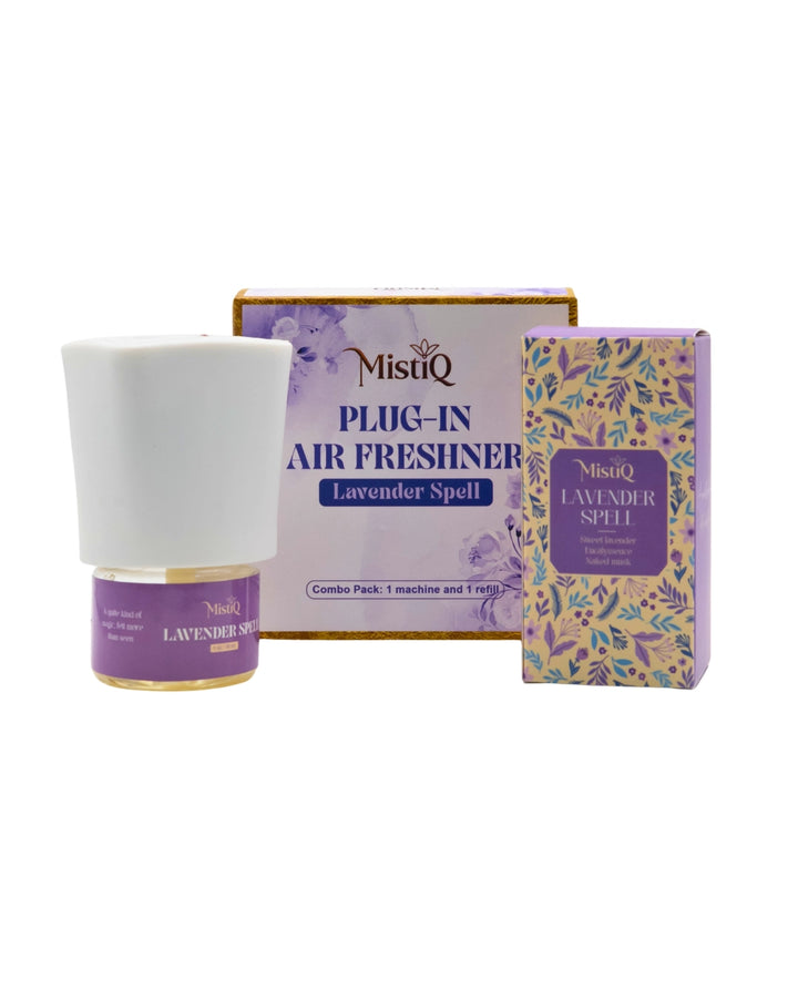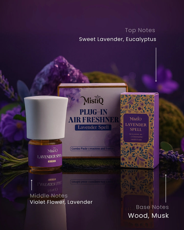 Step into a realm of quiet enchantment with Lavender Spell. This premium plug-in air freshener releases a continuous cascade of soft lavender blooms, kissed with a whisper of fresh herbs and warm dusk air.